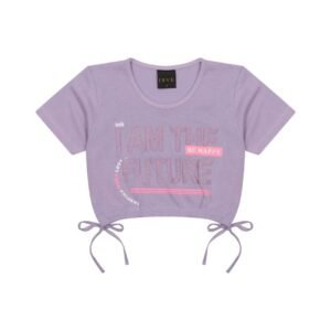 Com uma estampa divertida “Be Happy” e a delicada cor lilás, o modelo combina estilo e conforto, sendo perfeito para passeios, escola ou momentos de lazer.