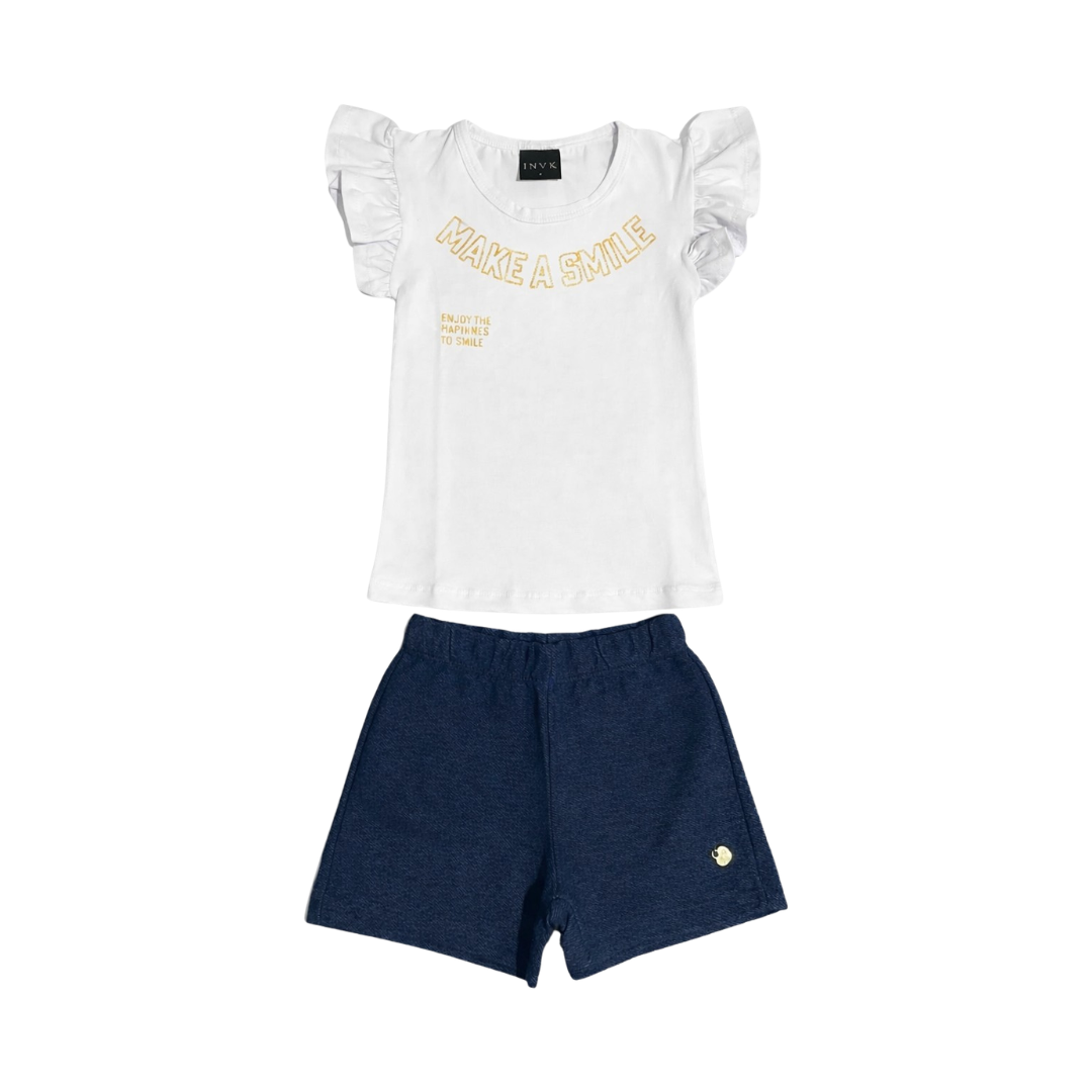 Conjunto Infantil Feminino Cotton Branco e Azul TM4