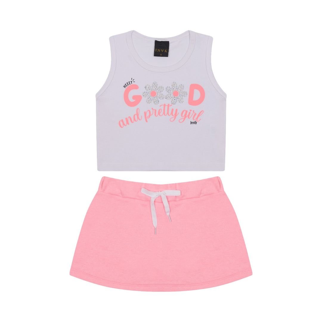 O Conjunto Infantil Feminino Cotton Good é a escolha perfeita para unir conforto e estilo. Composto por camiseta em malha mista (50% algodão, 46% poliéster e 4% elastano) e shorts saia em algodão e poliéster, o conjunto é leve, elástico e ideal para o dia a dia.