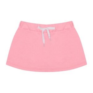 A combinação das cores branco e rosa traz um visual delicado e moderno, enquanto o tecido macio garante liberdade para brincar e se movimentar com conforto.