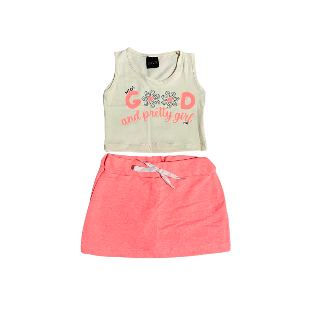 O Conjunto Infantil Feminino Cotton Good é a escolha perfeita para unir conforto e estilo. Composto por camiseta em malha mista (50% algodão, 46% poliéster e 4% elastano) e shorts saia em algodão e poliéster, o conjunto é leve, elástico e ideal para o dia a dia.