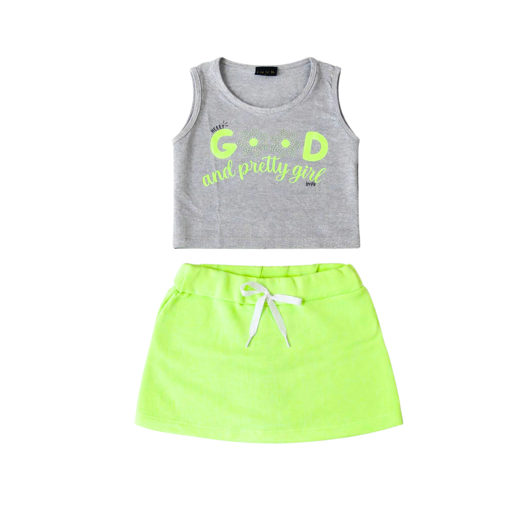 O Conjunto Infantil Feminino Cotton Good é a escolha perfeita para unir conforto e estilo. Composto por camiseta em malha mista (50% algodão, 46% poliéster e 4% elastano) e shorts saia em algodão e poliéster, o conjunto é leve, elástico e ideal para o dia a dia.